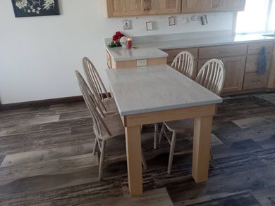 "I brought 3 pieces of Corian to Christy and he had it glued and holes cut for the sink and faucet within a day. The seams are undetectable. He even resurfaced it to eliminate scratches that came with the pieces. Great service!"